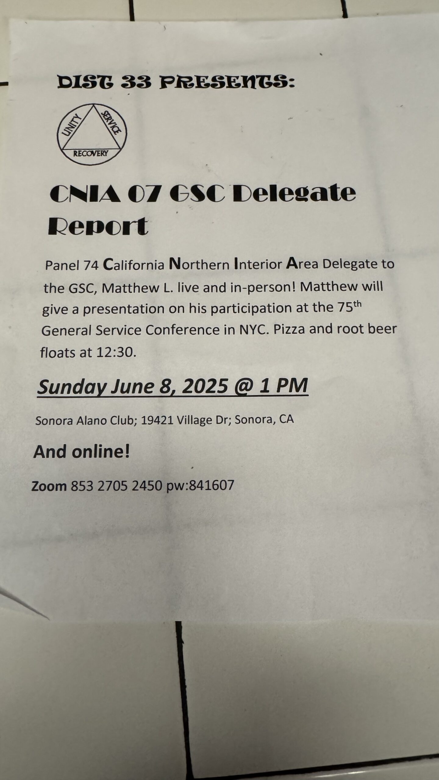 California Northern Interior Area 07 of Alcoholics Anonymous