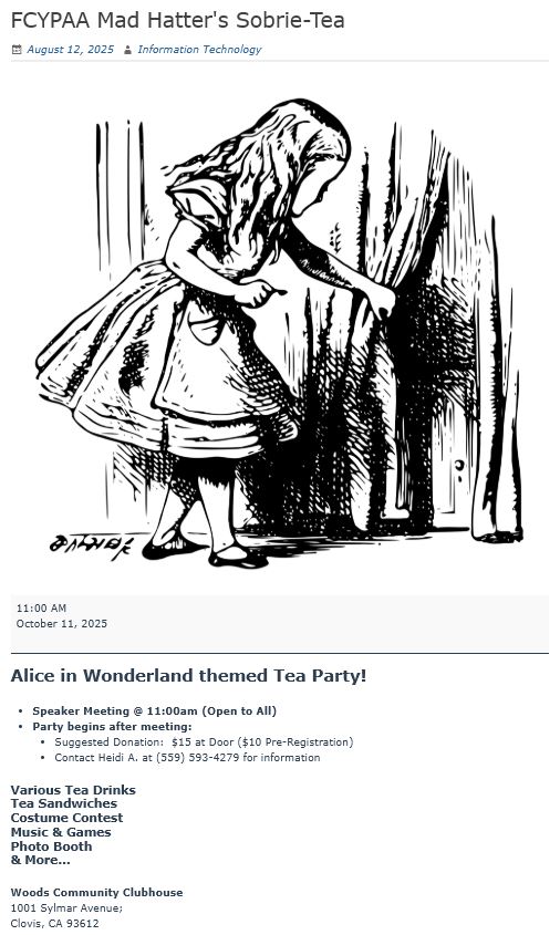 FCYPAA Mad Hatter’s Sobrie-Tea and Speaker Meeting